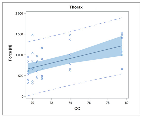 Predicted probabilities (with 95% CI) for maximum traction forces during chest entrance based on calf’s chest circumference (CC).