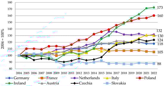 - Rozkrut, D. (Ed.) Statistical Yearbook of Agriculture and Rural Areas, Central Statistical Office; Statistical Publishing Establishment, Zakład Wydawnictw Statystycznych: Warszawa, Poland, 2023; ISSN 2080-8798. [Google Scholar]