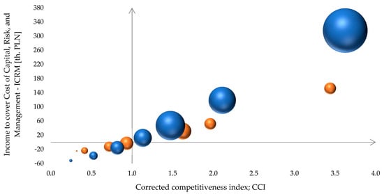 | Farm Income [th. PLN] | Opportunity Cost of Own Labour [th. PLN] | Opportunity Cost of Own Land [th. PLN] | Corrected Competitiveness Index | Farm Income [th. PLN] | Opportunity Cost of Own Labour [th. PLN] | Opportunity Cost of Own Land [th. PLN] | Corrected Competitiveness Index | |