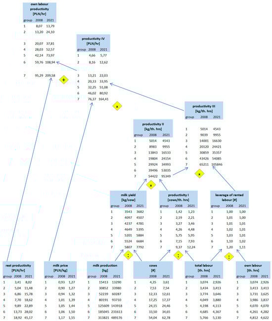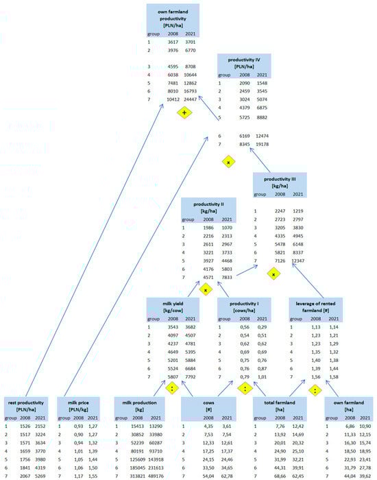 - Świtłyk, M.; Sompolska-Rzechuła, A.; Kurdyś-Kujawska, A. Measurement and Evaluation of the Efficiency and Total Productivity of Dairy Farms in Poland. Agronomy 2021, 11, 2095. [Google Scholar] [CrossRef]