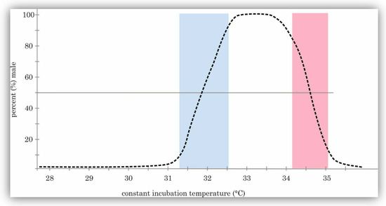 - Mitchell, N.J.; Janzen, F.J. Temperature-dependent sex determination and contemporary climate change. Sex. Dev. 2010, 4, 129–140. [Google Scholar] [CrossRef]