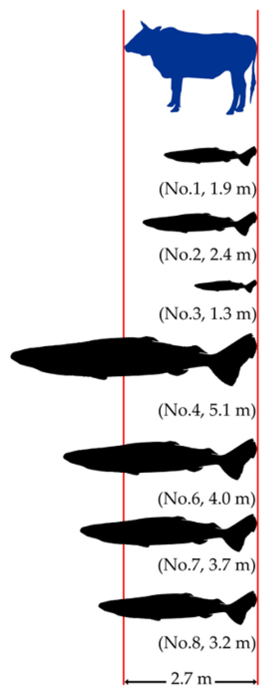 Figure 4. Estimation of specimens’ (Somniosus pacificus) total length based on the reference length of the cow.
