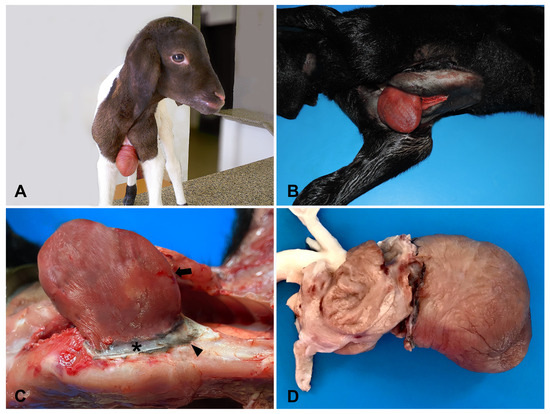 - Martín-Alguacil, N.; Avedillo, L. Cantrell syndrome (thoracoabdominal ectopia cordis; anomalous umbilical cord; diaphragmatic, pericardial and intracardiac defects) in the pig (Sus scrofa domesticus). J. Comp. Path. 2020, 174, 99–103. [Google Scholar] [CrossRef] [PubMed]