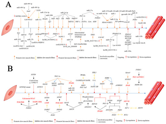 In this review, we delved into the roles of non-coding RNAs, pertinent genes, and their interactions within these regulatory networks. By synthesizing recent findings, we aimed to provide a comprehensive overview of the genetic underpinnings that govern muscle fibers’ heterogeneity, shedding light on their implications for animal physiology and potential applications in various fields.