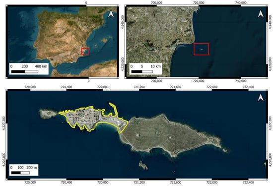 - Tabarca—Paisajes Turísticos Valencianos, Valiosos y Valorados. Available online: https://paisajesturisticosvalencianos.com/paisajes/tabarca/ (accessed on 23 May 2024).