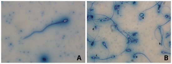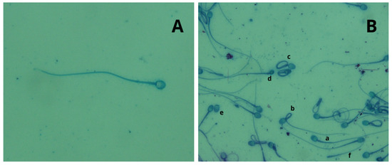 - Pukazhenthi, B.S.; Wildt, D.E.; Howard, J.G. The phenomenon and significance of teratospermia in felids. J. Reprod. Fertil. Suppl. 2001, 57, 423–433. [Google Scholar] [PubMed]