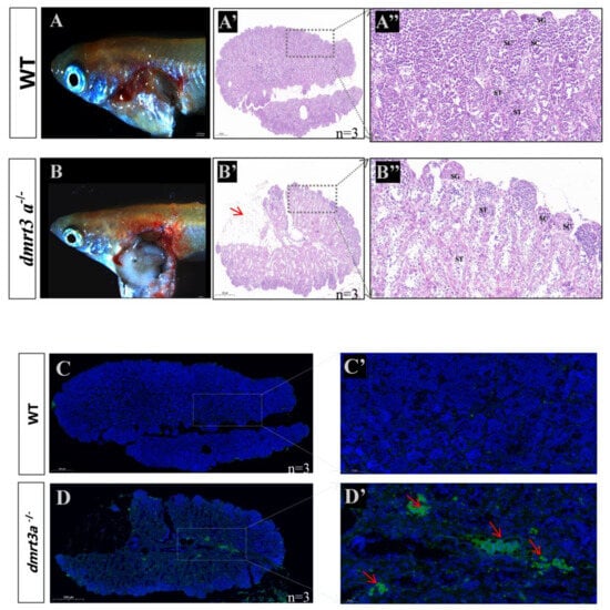 - Raymond, C.S.; Murphy, M.W.; O’Sullivan, M.G.; Bardwell, V.J.; Zarkower, D. Dmrt1, a gene related to worm and fly sexual regulators, is required for mammalian testis differentiation. Genes. Dev. 2000, 14, 2587–2595. [Google Scholar] [CrossRef] [PubMed]