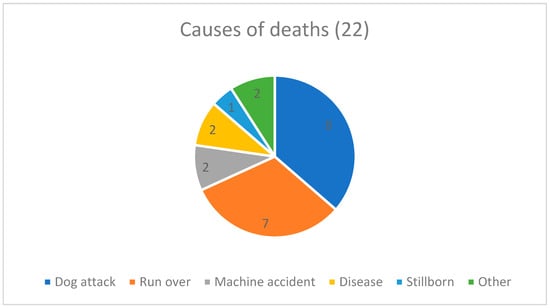 Causes of deaths. Those animals whose corpses could not undergo autopsy or which had no reports on the cause of death were categorized as “other”.