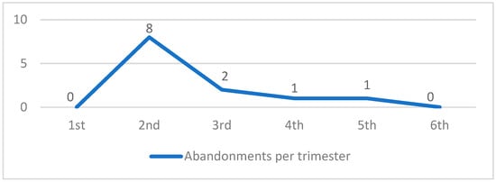 Among the 157 registered animals, 12 (7.6%) were abandoned on site during the 18-month experimental period (Figure 5, Table 5).