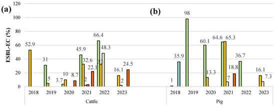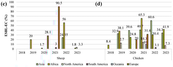 APA StyleMandujano-Hernández, A., Martínez-Vázquez, A. V., Paz-González, A. D., Herrera-Mayorga, V., Sánchez-Sánchez, M., Lara-Ramírez, E. E., Vázquez, K., de Jesús de Luna-Santillana, E., Bocanegra-García, V., & Rivera, G. (2024). The Global Rise of ESBL-Producing Escherichia coli in the Livestock Sector: A Five-Year Overview. Animals, 14(17), 2490. https://doi.org/10.3390/ani14172490