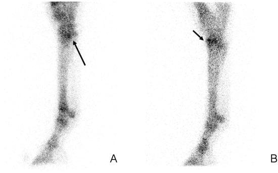 - Ueltschi, G. Bone and joint imaging with 99mTc labelled phosphates as a new diagnostic aid in veterinary orthopedics. Vet. Radiol. Ultrasound 1977, 18, 80–89. [Google Scholar] [CrossRef]