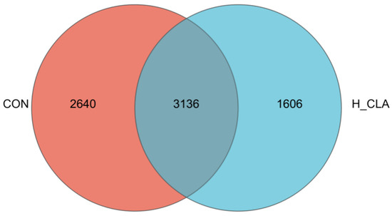 Shared and unique operational taxonomic units (OTUs) between the control (CON) and the high-dose conjugated linoleic acid (H-CLA) group.