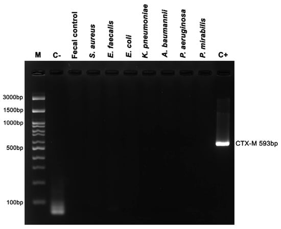 3.3. Specificity of nPCR for the Direct Fecal Detection of blaCTX-M