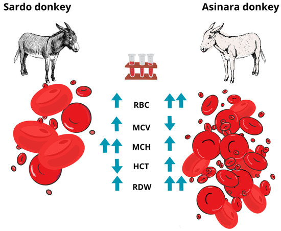 Hematological data were analyzed for variance between the two breeds (Asinara vs. Sardo) via one-way ANOVA, by running a datasheet on Minitab_19 © (State College, PA, USA).