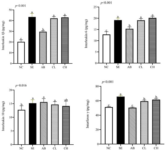 | Spleen index (g/kg) | 2.90 ± 0.05 a | 2.40 ± 0.09 c | 2.94 ± 0.07 a | 2.83 ± 0.06 a | 2.59 ± 0.02 b | <0.001 |