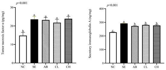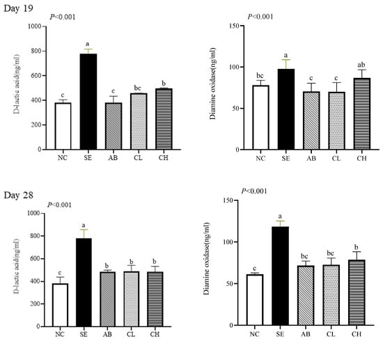 | Villus height/crypt depth value | 6.06 ± 0.16 a | 3.13 ± 0.21 d | 4.81 ± 0.08 b | 3.72 ± 0.09 c | 3.62 ± 0.09 c | <0.001 |