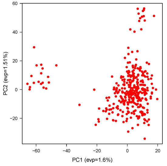 Principal component analysis (PCA) plot showing population structure in the analyzed herd of Slovenian Holstein Friesian Cows.