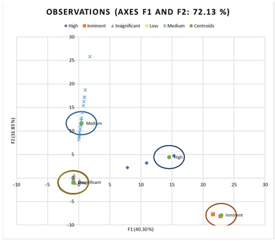 Additionally, to evaluate the proximity between risk levels, Mahalanobis distances were represented (Figure 5).