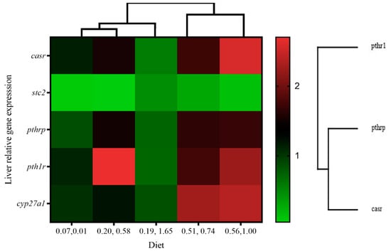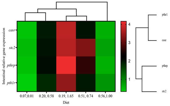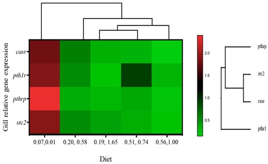 | casr | 1.80 ± 1.01 b | 0.58 ± 0.16 a | 0.31 ± 0.20 a | 0.30 ± 0.36 a | 0.15 ± 0.07 a | 0.24 | 0.03 | 0.65 |