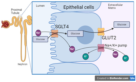 - Vallon, V. Glucose transporters in the kidney in health and disease. Pflügers Arch. Eur. J. Physiol. 2020, 472, 1345–1370. [Google Scholar] [CrossRef] [PubMed]