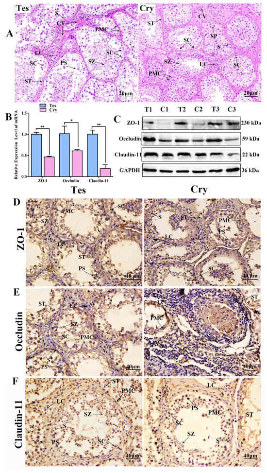 3.1. Cell TJs and BTB Were Detected in yak Testis and Cryptorchidism