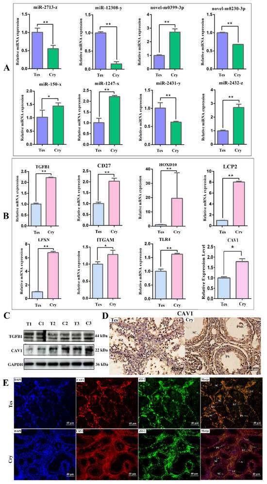 2.2. Identification via RNA-seq and Bioinformatics Analysis of miRNAs and mRNAs in Yak Testis and Cryptorchidism