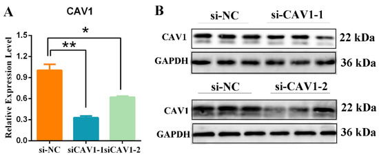 3.6. Detection of Silencing Efficiency of the CAV1 Gene