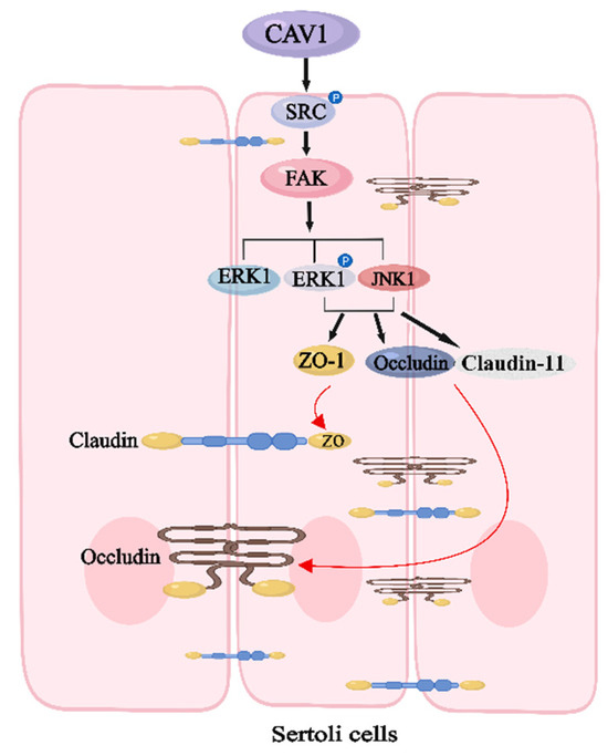3.7. Up-Regulated CAV1 Promoted TJs and BTBs via FAK/ERK Pathway of Sertoli Cells