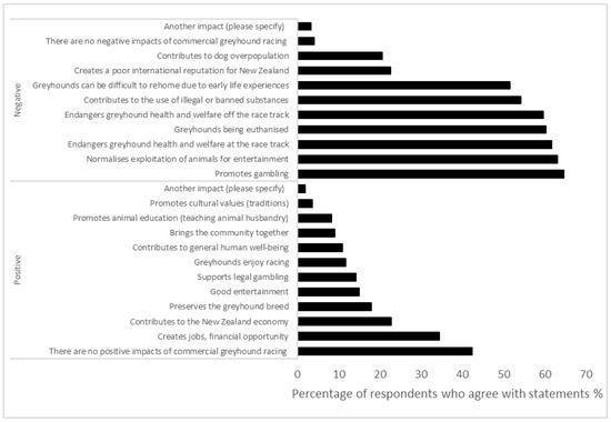 Welfare issues within greyhound racing have resulted in a negative perception of the industry; 72% of respondents in this survey reported holding a negative view of commercial greyhound racing. This was similar to the results of surveys of Australians [33] with more than 60% of respondents agreeing that the greyhound industry endangers greyhound welfare on and off the racetrack, results in euthanizing greyhounds, promotes gambling and normalizes exploitation of animals for entertainment.