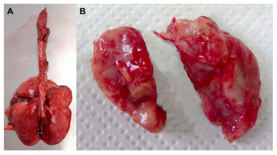 (A) Lungs and (B) retropharyngeal lymph nodes of road-killed badger without lesion of miliary tuberculosis.