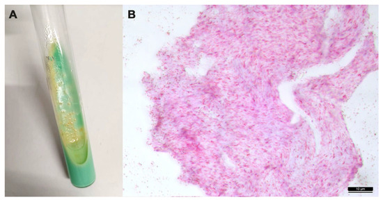 (A) Colonies of Mycobacterium avium subsp. avium grown on Lowenstein–Jensen medium; (B) Zielh–Neelsen positive staining of a suspected colony. Microscopic examination of the acid-fast smear reveals cells that are typically short and coccobacillary (100×).