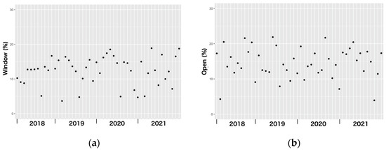 The appearance frequency of the most frequently appearing words in the texts posted by owners related to the cause of escape; (a) “window (mado)”; and (b) “to open (akeru)”.