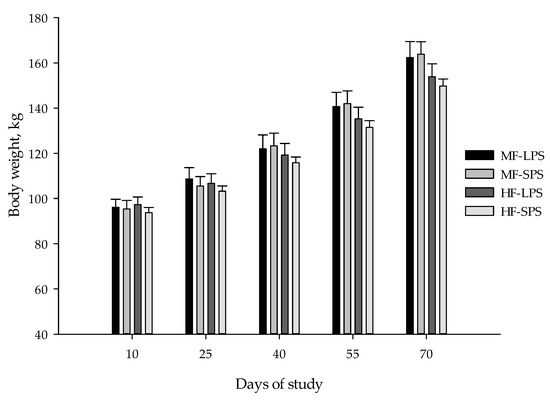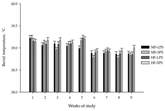 Throughout the experiment, the mean, maximum, and minimum THI values averaged 73.0 ± 1.86, 86.2 ± 2.79, and 62.4 ± 1.79, respectively (Figure 1).