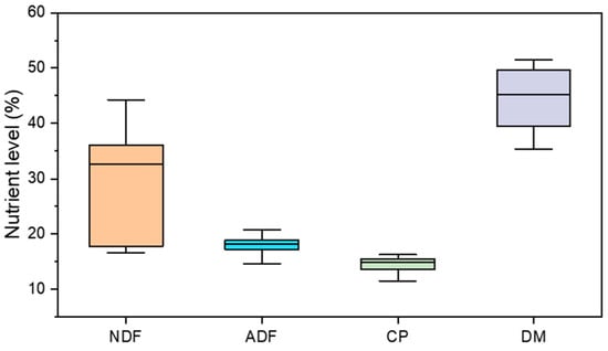 Nutrient levels of the data set (NDF, ADF, CP, and DM).