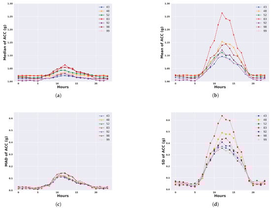 APA StyleHu, S., Reverter, A., Arablouei, R., Bishop-Hurley, G., McNally, J., Alvarenga, F., & Ingham, A. (2024). Analyzing Cattle Activity Patterns with Ear Tag Accelerometer Data. Animals, 14(2), 301. https://doi.org/10.3390/ani14020301