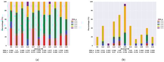 - Marchesini, G.; Mottaran, D.; Contiero, B.; Schiavon, E.; Segato, S.; Garbin, E.; Tenti, S.; Andrighetto, I. Use of rumination and activity data as health status and performance indicators in beef cattle during the early fattening period. Vet. J. 2018, 231, 41–47. [Google Scholar] [CrossRef]