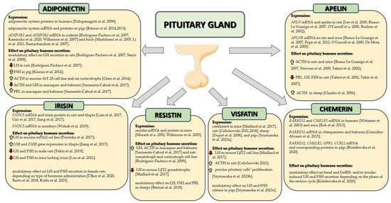 Kaminska B, Kurowicka B, Kiezun M, Dobrzyn K, Kisielewska K, Gudelska M, Kopij G, Szymanska K, Zarzecka B, Koker O, et al. The Role of Adipokines in the Control of Pituitary Functions. Animals. 2024; 14(2):353. https://doi.org/10.3390/ani14020353
