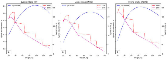 - Remus, A.; Méthot, S.; Hauschild, L.; Létourneau-Montminy, M.P.; Pomar, C. Estimating Real Time Individual Lysine and Threonine Requirements in Precision-Fed Pigs. In Proceedings of the Energy and Protein Metabolism and Nutrition, Belo Horizonte, Brazil, 9 September 2019; Wageningen Academic Publishers: Wageningen, The Netherlands, 2019; pp. 451–452. [Google Scholar]