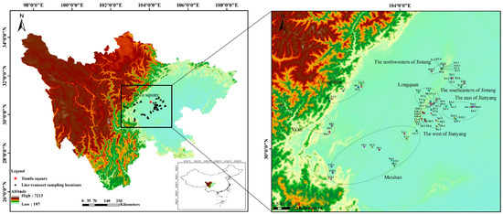 Chengdu, a famous tourist attraction and the capital of Sichuan province, is located in southwest China. This region has a subtropical humid monsoon climate, with an average annual precipitation of over 1000 mm, an average annual temperature of 16 °C, and an average elevation of about 500 meters. The terrain of Chengdu slopes from northwest to southeast. Owing to the large vertical height difference, plains, hills, and mountains form a unique geomorphological type within the city, resulting in a variety of land use types and natural environments. Owing to the significant differences in climate, a vertical line in climate zones is formed, and thus a high level of biological diversity can be found in the southwest China [30,31].