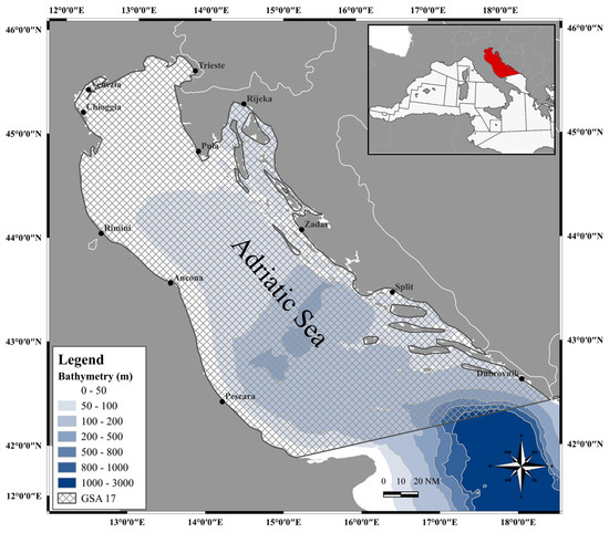 Map of the study area GSA 17, elaborated by I. Costantini (software: QGIS Development Team, 2024. QGIS Geographic Information System. Open Source Geospatial Foundation Project. http://qgis.osgeo.org, accessed on 30 May 2024).
