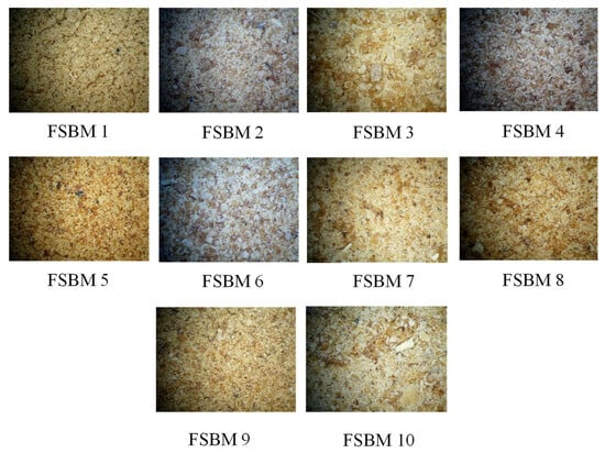 Microscope photos of fermented soybean meal (FSBM) samples.