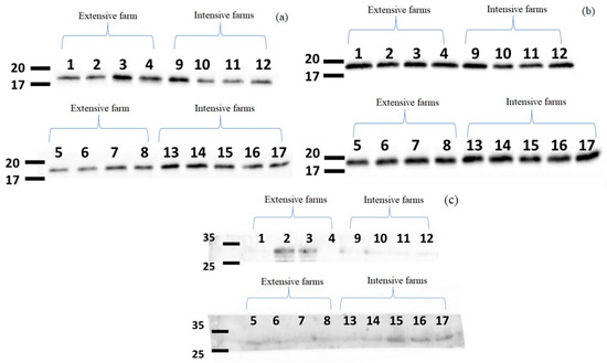 - el Qassim, L.A.; Alonso, J.; Zhao, K.; Le Guillou, S.; Diez, J.; Vicente, F.; Fernández-Sanjurjo, M.; Iglesias-Gutiérrez, E.; Guan, L.; Royo, L.J. Differences in the microRNAs Levels of Raw Milk from Dairy Cattle Raised under Extensive or Intensive Production Systems. Veter- Sci. 2022, 9, 661. [Google Scholar] [CrossRef] [PubMed]