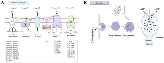 (A) Oxidative phosphorylation pathway; (B) Lysosome pathway.