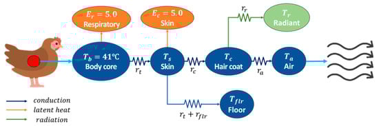 - Reece, F.; Lott, B. The effect of environmental temperature on sensible and latent heat production of broiler chickens. Poult. Sci. 1982, 61, 1590–1593. [Google Scholar] [CrossRef] [PubMed]