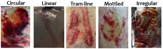 - Miranda-de la Lama, G.C.; González-Castro, C.A.; Gutiérrez-Piña, F.J.; Villarroel, M.; Maria, G.A.; Estévez-Moreno, L.X. Horse welfare at slaughter: A novel approach to analyse bruised carcasses based on severity, damage patterns and their association with pre-slaughter risk factors. Meat Sci. 2021, 172, 108341. [Google Scholar] [CrossRef]