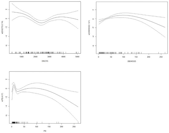 24]. The connection function was selected through an exploratory analysis of the response variables using distribution tests. In the construction of the GAM model, the forward selection method was used to gradually add linear or non-linear terms. The optimal model was selected according to the AIC (Akaike Information Criterion) and generalized cross-validation (GCV) value, and the model with minimum GCV and AIC values was judged as the optimal model. This was implemented using the “mgcv” package in R3.6.1. The significance level of the difference was 0.05.