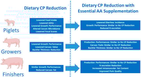 2. Effects of CP Reduction on the Productive Parameters of Piglets and Growing and Finishing Pigs of Lean Genetic Types