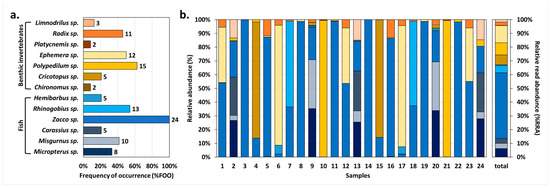 4.2. Faecal DNA Metabarcoding for Diet Analysis of Endangered Fish Species