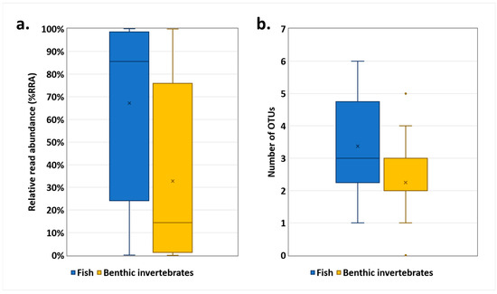 - Leray, M.; Yang, J.Y.; Meyer, C.P.; Mills, S.C.; Agudelo, N.; Ranwez, V.; Boehm, J.T.; Machida, R.J. A new versatile primer set targeting a short fragment of the mitochondrial COI region for metabarcoding metazoan diversity: Application for characterizing coral reef fish gut contents. Front. Zool. 2013, 10, 34. [Google Scholar] [CrossRef]