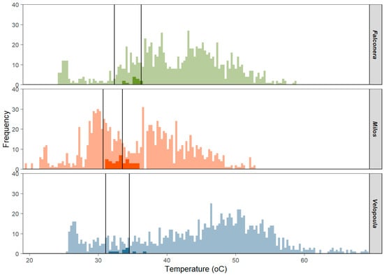 | Milos Island | 33.38 ± 1.37 | 32.03 ± 0.84 | 35.68 ± 6.67 | 0.49 ± 0.74 | 4.76 ± 4.38 | 0.89 | 4.27 |